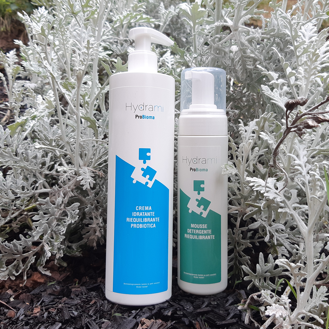 L’effetto riequilibrante “puzzle” viene riprodotto su etichette, depliant e ricettario dei prodotti della linea Hydrami di AllergoSystem.